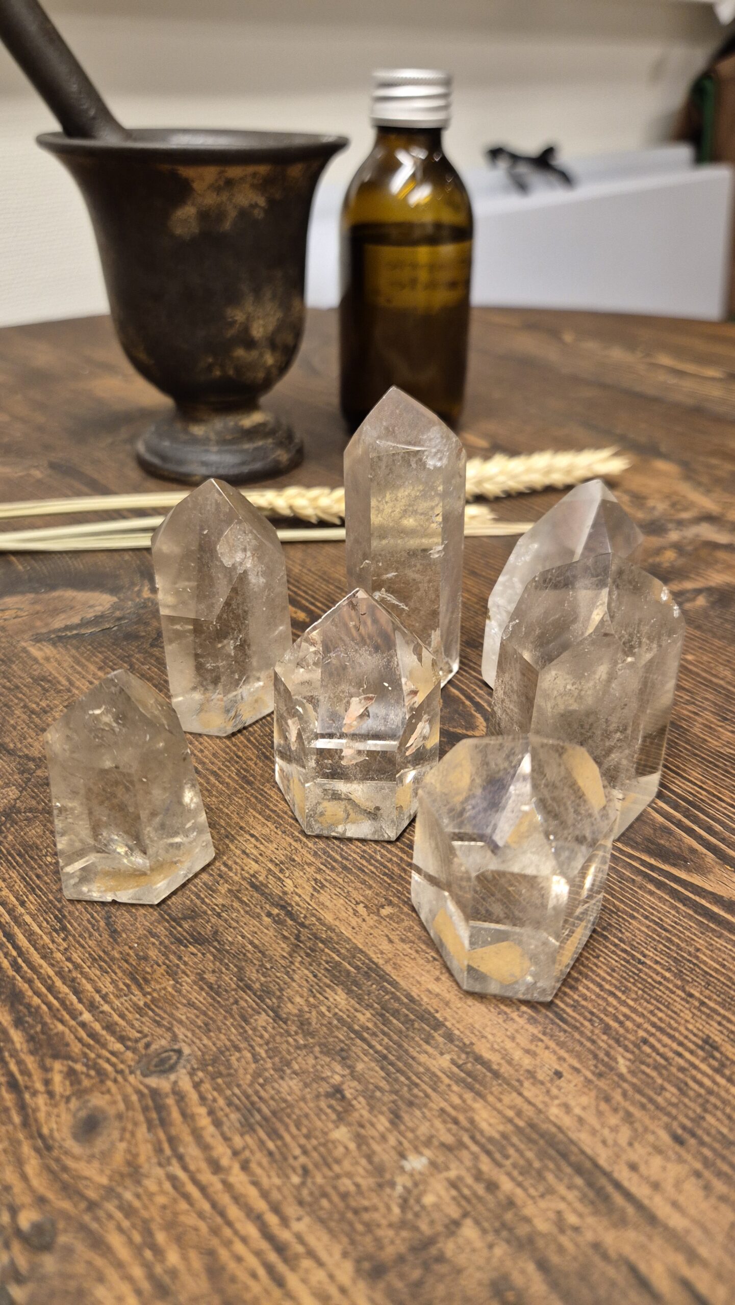 Slipade torn av rökkvarts. Ca 4-7cm höga.